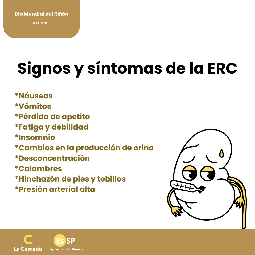 La enfermedad renal crónica se presenta de forma silenciosa y por lo regular presenta síntomas solo en etapas avanzadas y cuando es demasiado tarde tratarla.