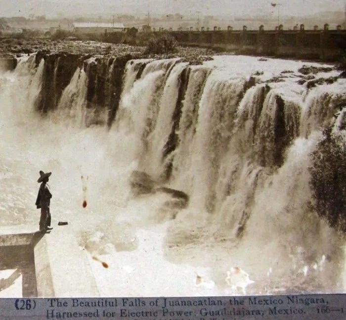 Hay una cascada en el río Santiago que a finales del siglo XIX los viajeros extranjeros llamaron el Niágara mexicano. Caía con tal estrépito que se escuchaba desde lejos, y su fuerza era tan real, tan aprovechable, que en 1892 se construyó a sus pies la primera planta hidroeléctrica para servicio público de toda la República. Cuatro años después, en 1896, abrió sus puertas la Fábrica de Hilados y Tejidos Río Grande, con la razón social de Compañía Industrial Manufacturera: un edificio de inspiración Beaux Arts, ladrillo rojo fabricado en la ribera misma del río, y una chimenea de noventa metros que podía verse desde kilómetros a la redonda.