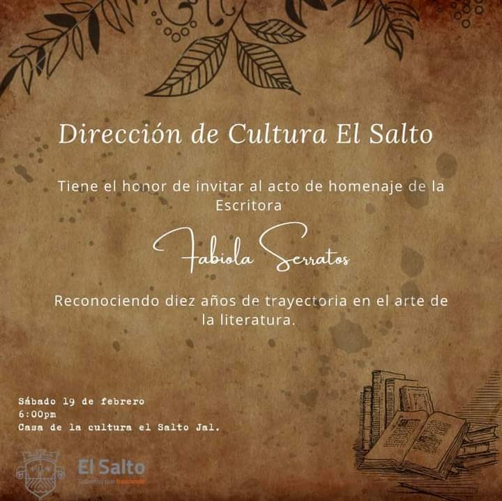 La Dirección de Cultura El Salto, otorgará el próximo sábado 19 de febrero en punto de las 6pm un homenaje a la escritora y activista social, como reconocimiento a su labor y el hacer de las letras una herramienta de lucha y justicia social para la libertad de las mujeres.