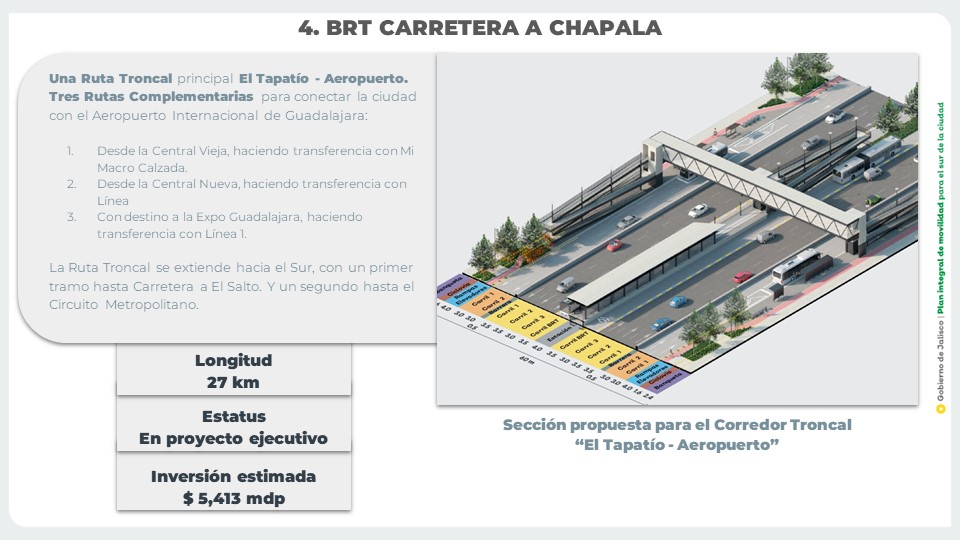 Uno de los ejes de la estrategia de movilidad es la implementación de una ruta de transporte BRT que correría por la carretera a Chapala.