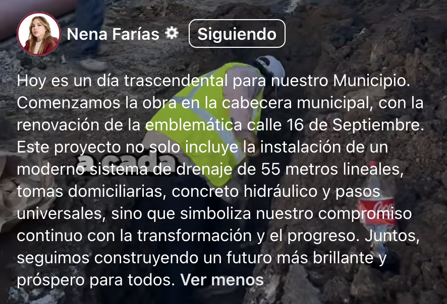 "Con buenas noticias para los saltenses amanecimos este jueves 26 de diciembre, nuestra presidenta municipal, Nena Farías, dio los banderazos de arranque de 3 obras muy importantes para el centro del municipio, el cual tenía años de abandono", expresó en un comunicado el Gobierno Municipal.