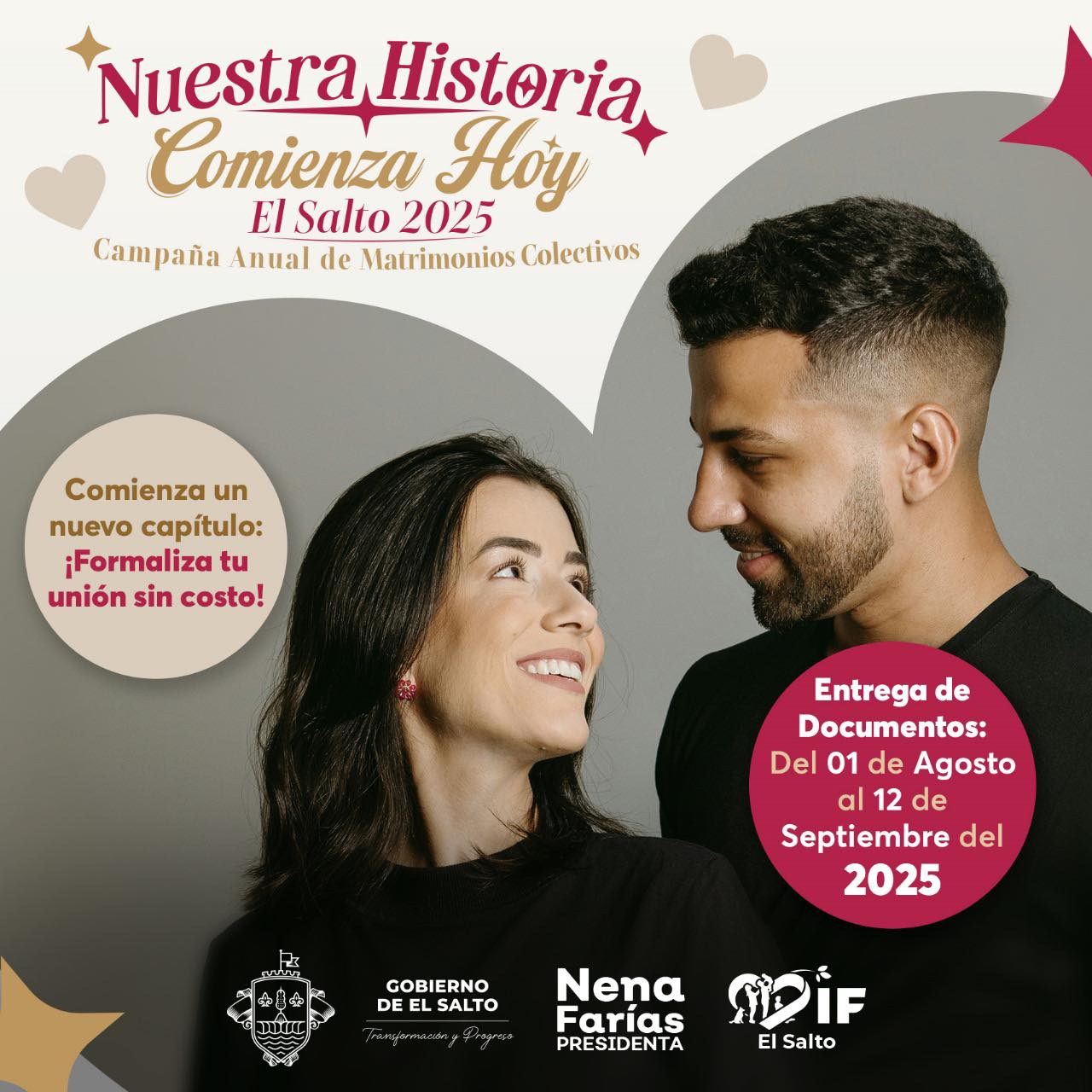 "Una gran oportunidad para dar certeza jurídica a las parejas que han decidido unir sus vidas con amor y compromiso. Desde el Gobierno de la transformación trabajamos para hacer posible que más familias puedan acceder a este derecho sin costo, fortaleciendo los lazos y brindando seguridad legal a quienes más lo necesitan", informó la presidenta de El Salto, Nena Farías.