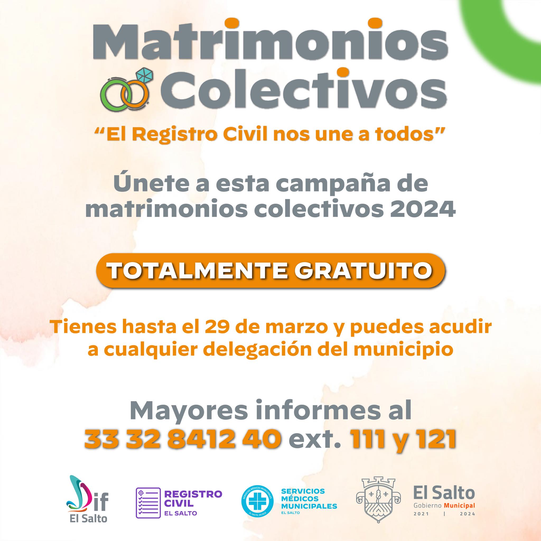 El Gobierno Municipal de El Salto te invita a casarte gratis.