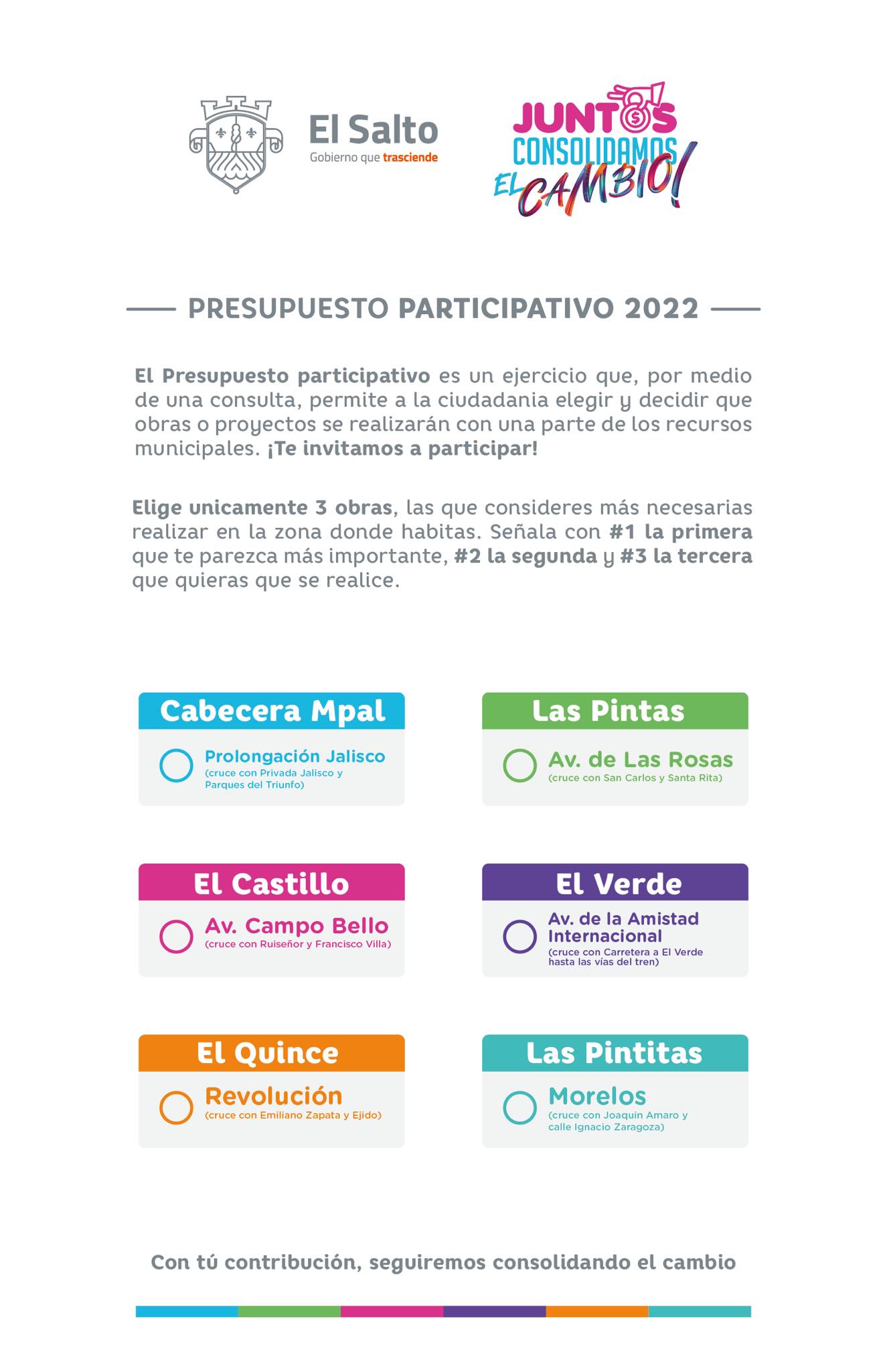 Esta iniciativa forma parte del ejercicio de Presupuesto Participativo 2022 que llevará a cabo el Ayuntamiento de El Salto, buscando empoderar a la población.