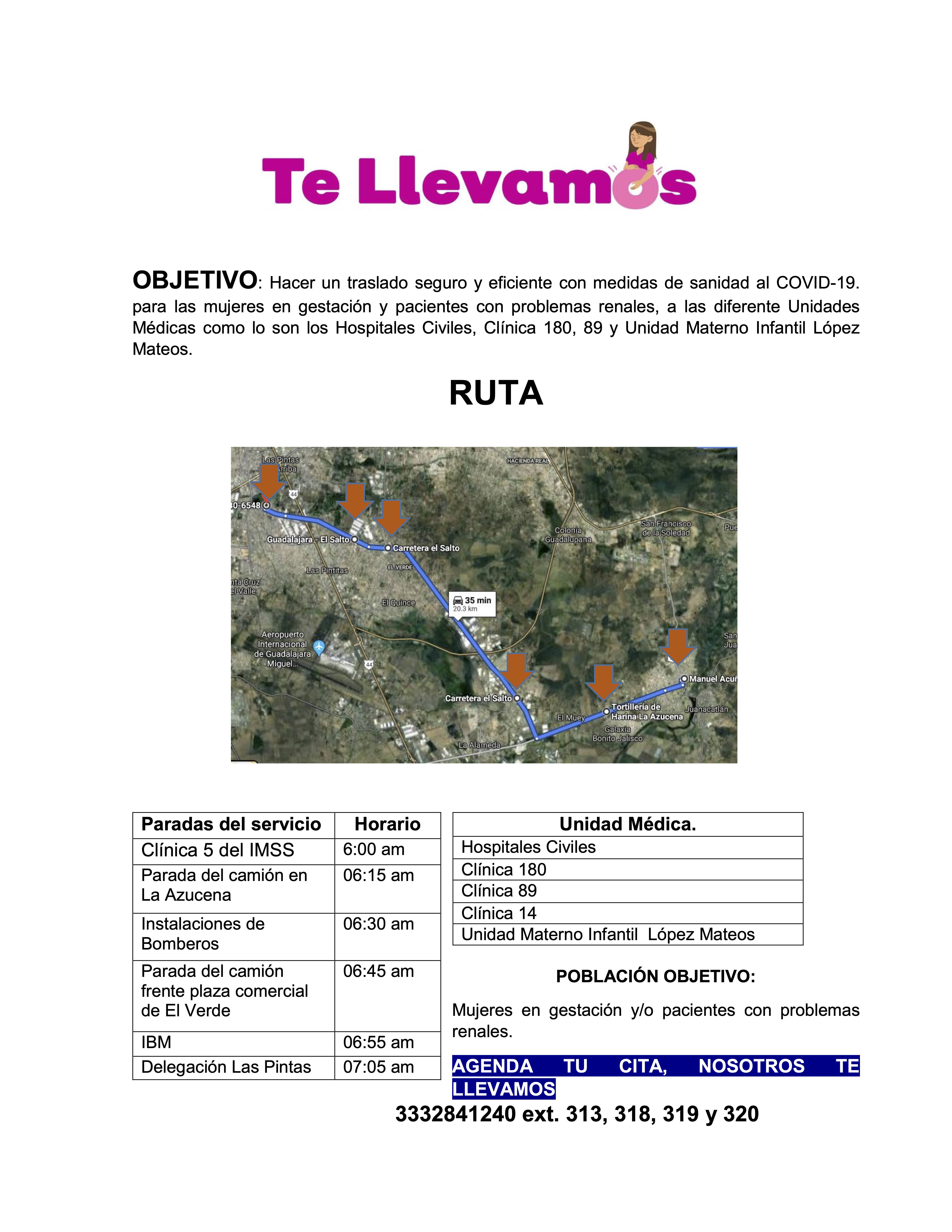 El objetivo es hacer un traslado seguro y eficiente con medidas de sanidad al COVID-19. para las mujeres en gestación y pacientes con problemas renales, a las diferente Unidades Médicas como lo son los Hospitales Civiles, Clínica 180, 89 y Unidad Materno Infantil López Mateos.