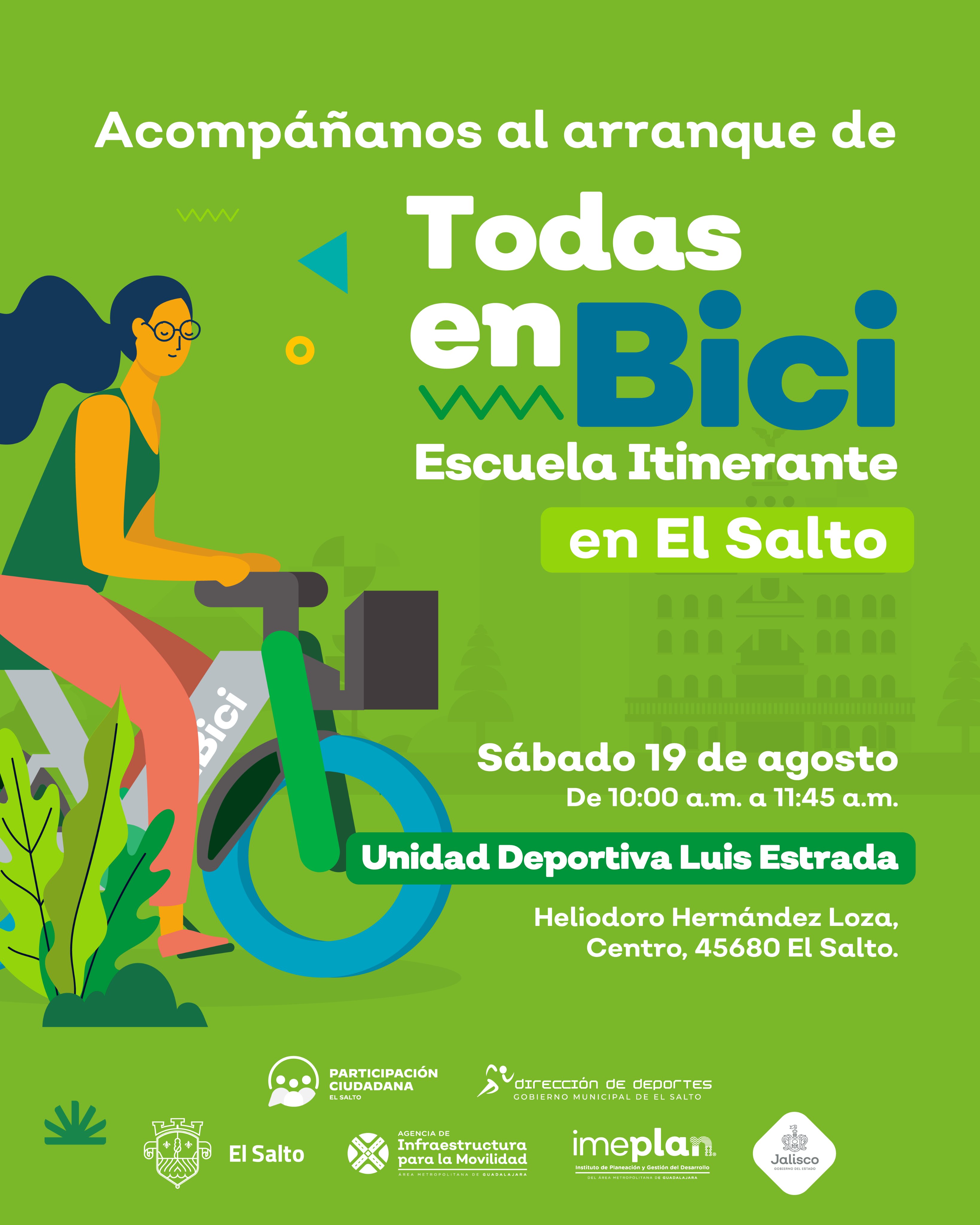 La Agencia Metropolitana de Infraestructura para la Movilidad del AMG hace una invitación al arranque de la Escuela Itinerante "Todas En Bici"la cual busca brindar herramientas a las mujeres para trasladarse en bicicleta.