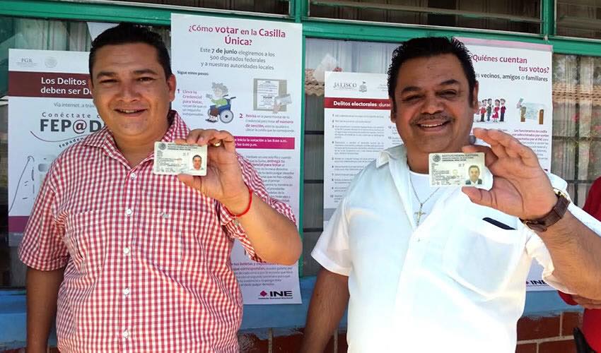 Marcos Godínez y Joel González posan la foto después de haber emitido su voto en La Huizachera, hace algunos años.