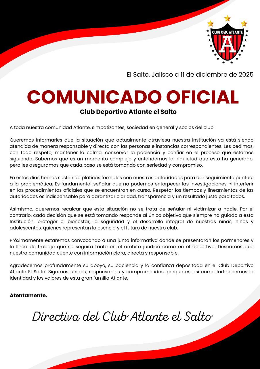 Este comunicado lanzó el Club el 11 de diciembre pasado