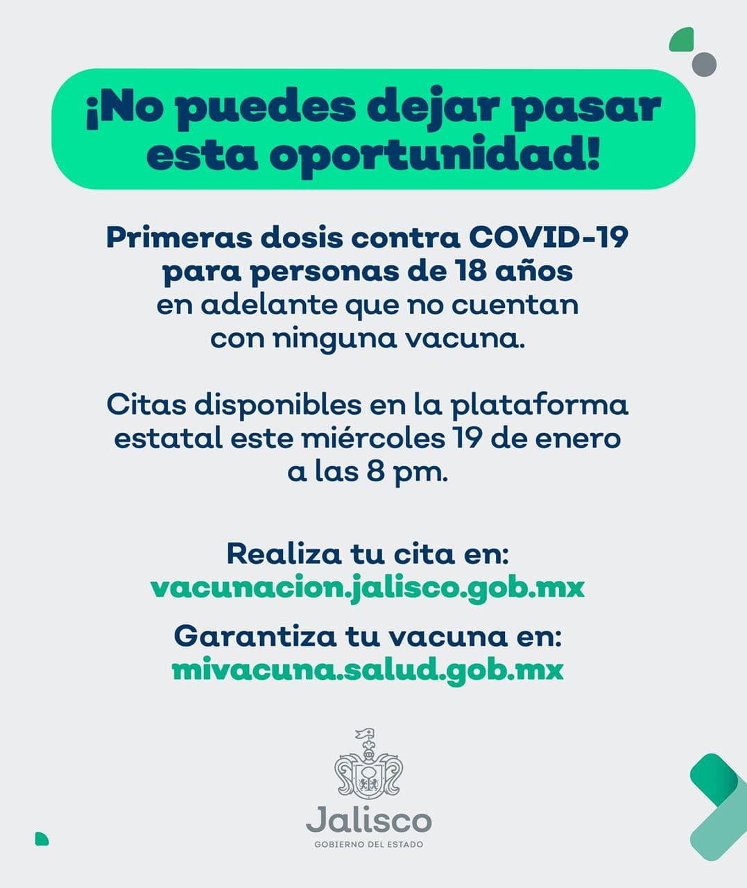Esta noche se habilitará la plataforma para poder registrarse en https://vacunacion.jalisco.gob.mx/