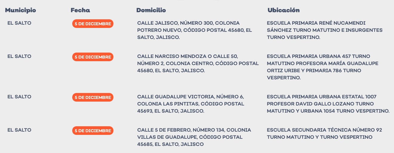 Ubica tu casilla en El Salto, Juanacatlán y Zapotlanejo.
